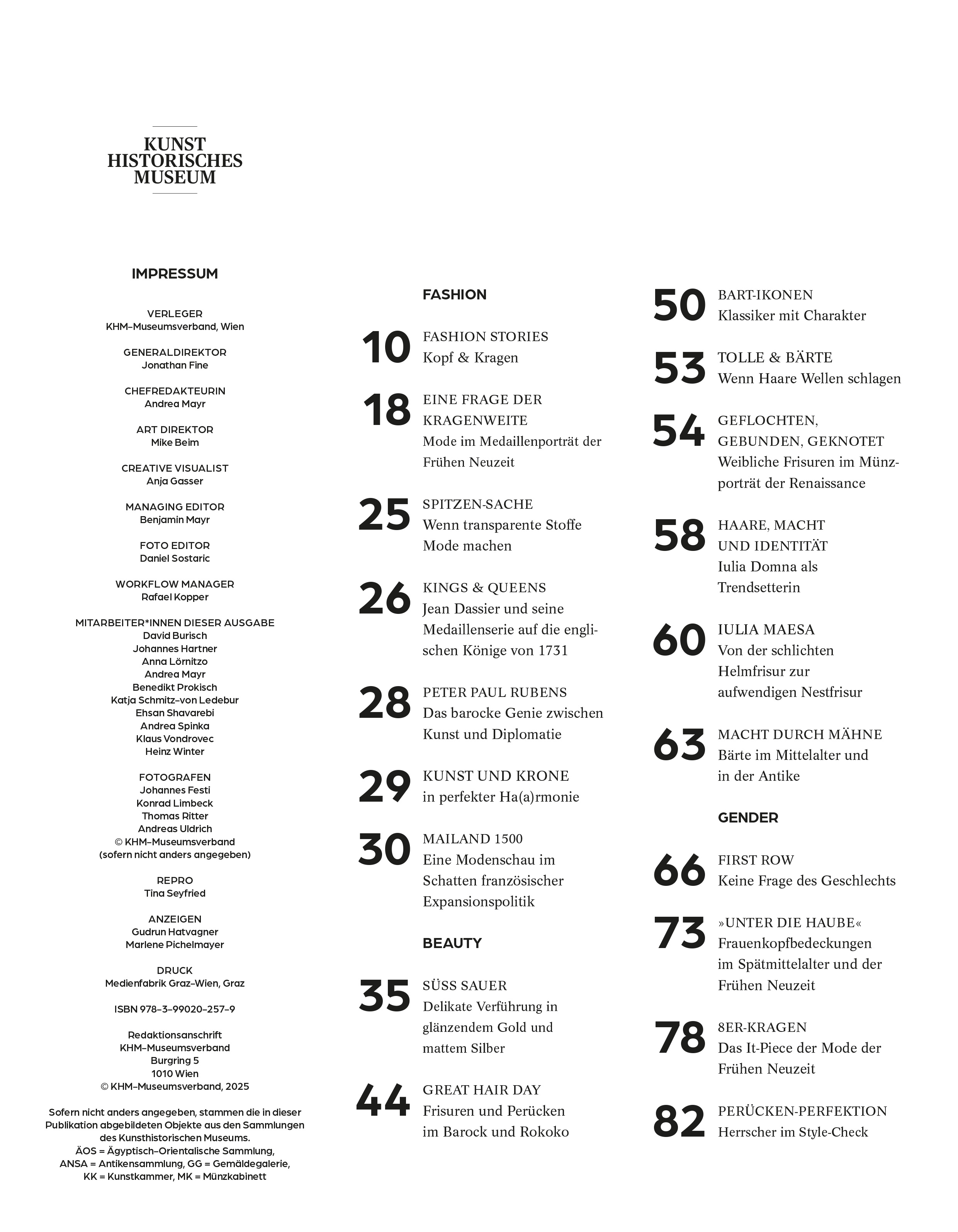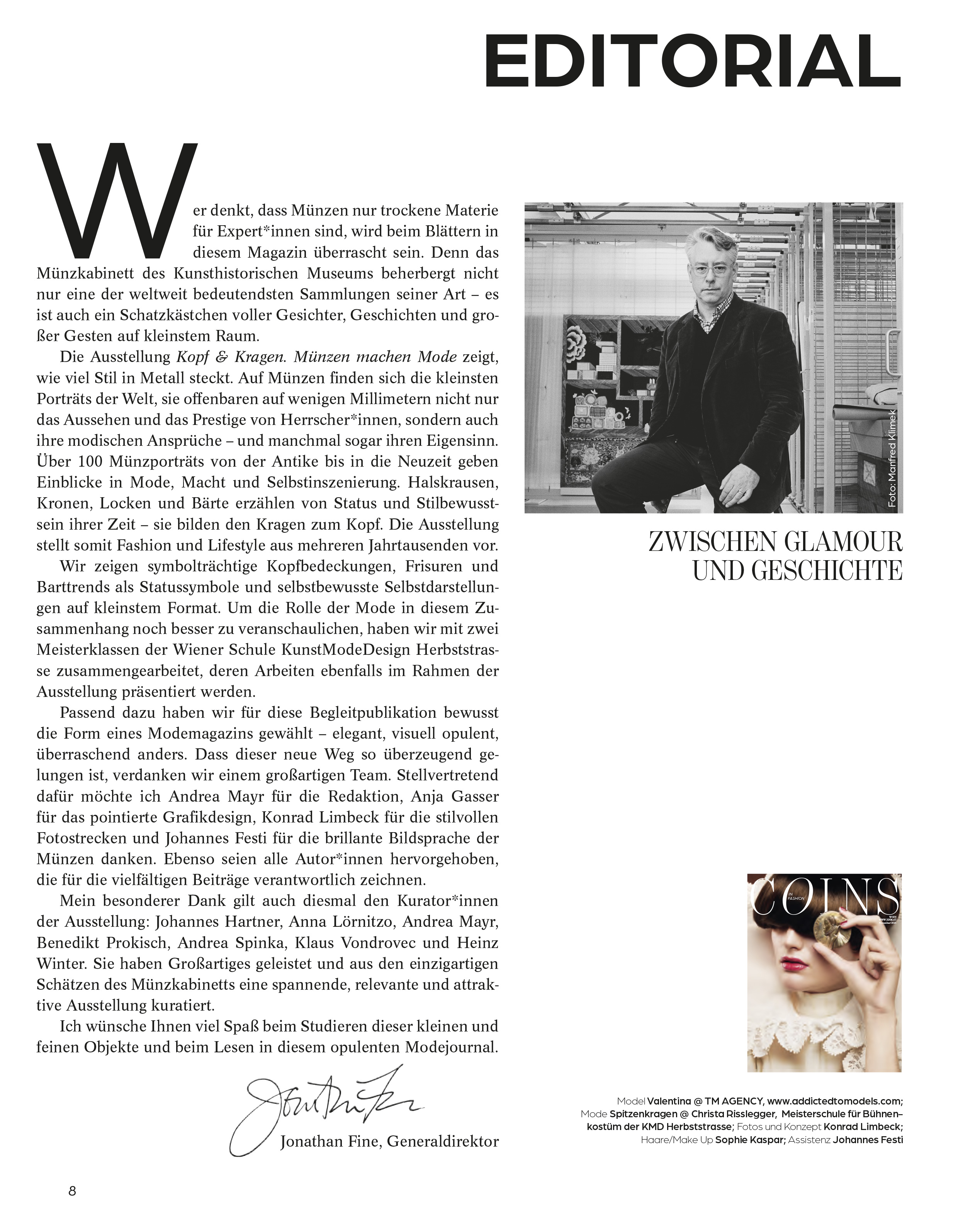 Die Ausstellung Kopf & Kragen präsentiert über hundert Münzporträts aus kulturhistorischer Perspektive und zeigt Fashion und Lifestyle aus mehreren Jahrtausenden. Passend dazu wurde für die Begleitpublikation bewusst die Form eines Modemagazins gewählt