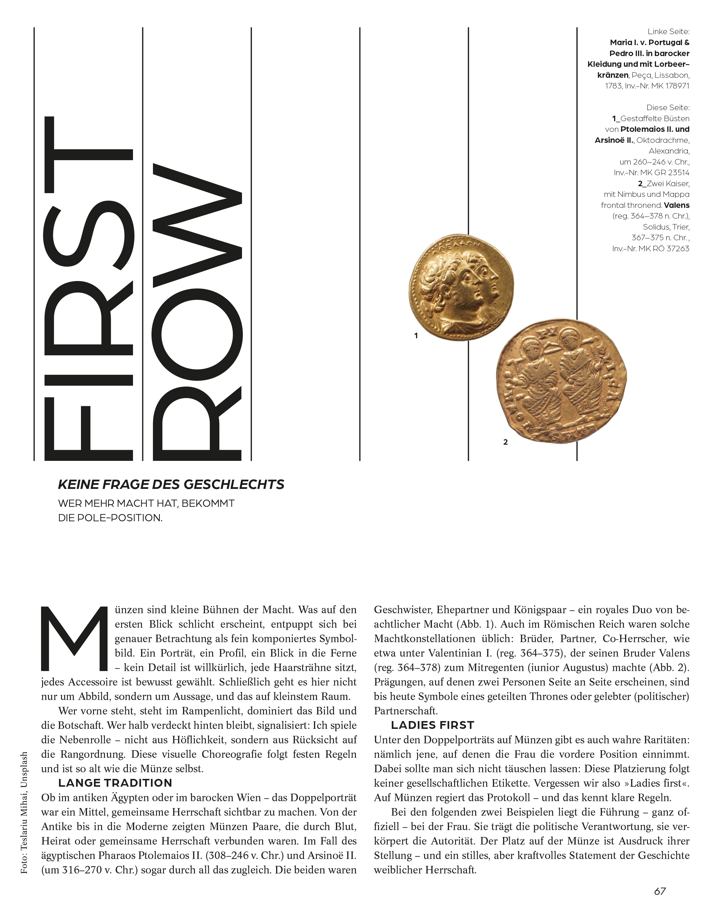 Wer denkt, dass Münzen nur trockene Materie für Expert*innen sind, wird beim Blättern in diesem Magazin überrascht sein. Denn das Münzkabinett des Kunsthistorischen Museums beherbergt nicht nur eine der weltweit bedeutendsten Sammlung seiner Art, es ist auch ein Schatzkästchen voller Gesichter, Geschichten und großer Gesten auf kleinstem Raum.