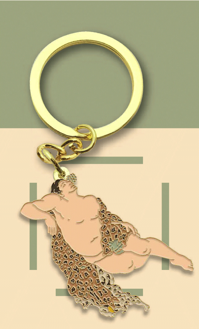 Schlüsselanhänger Der römische Gott des Weines als Schlüsselanhänger, inspiriert von dem Gemälde „Triumph des Bacchus“ (1655–1659) von Michaelina Wautier (ca. 1614/18–1689).