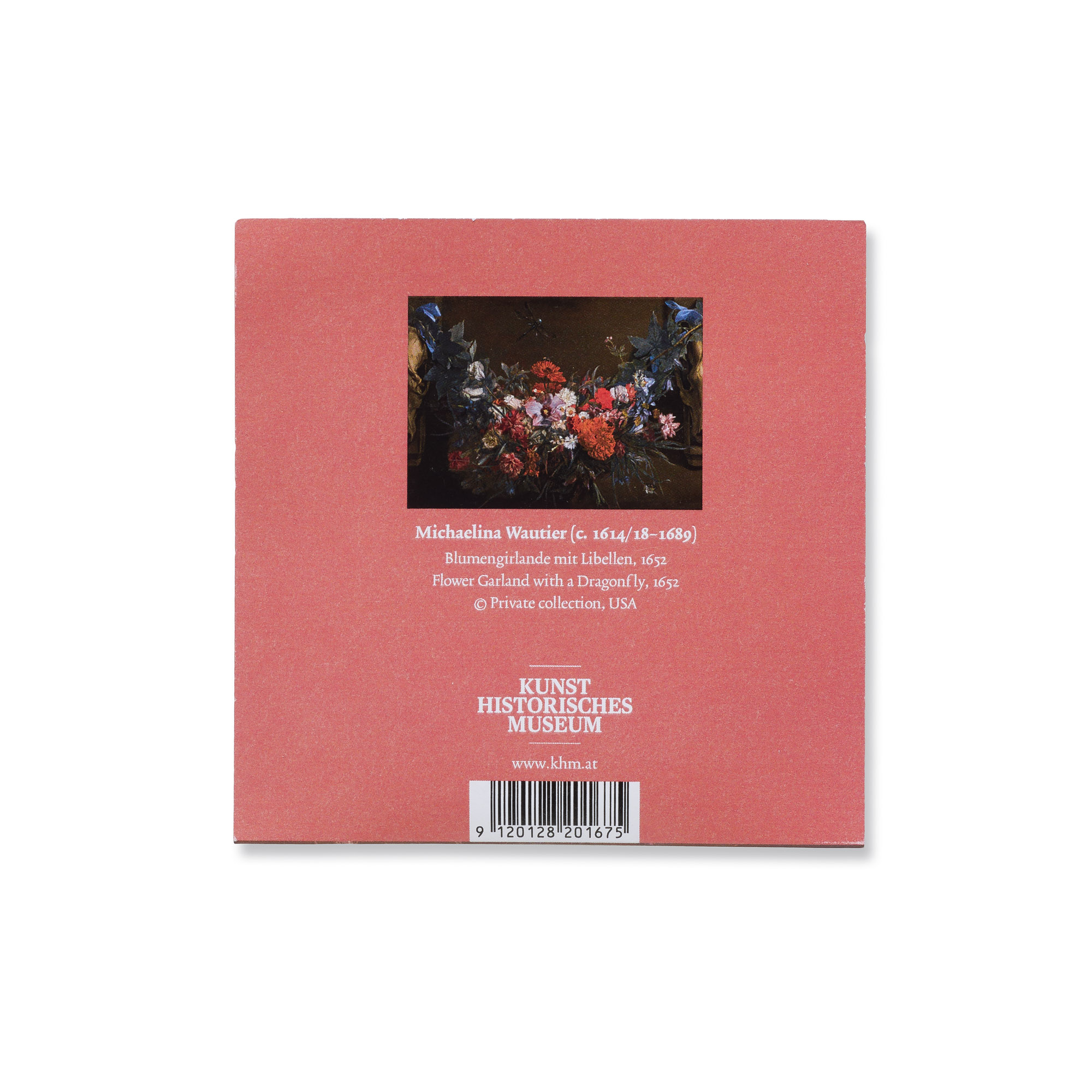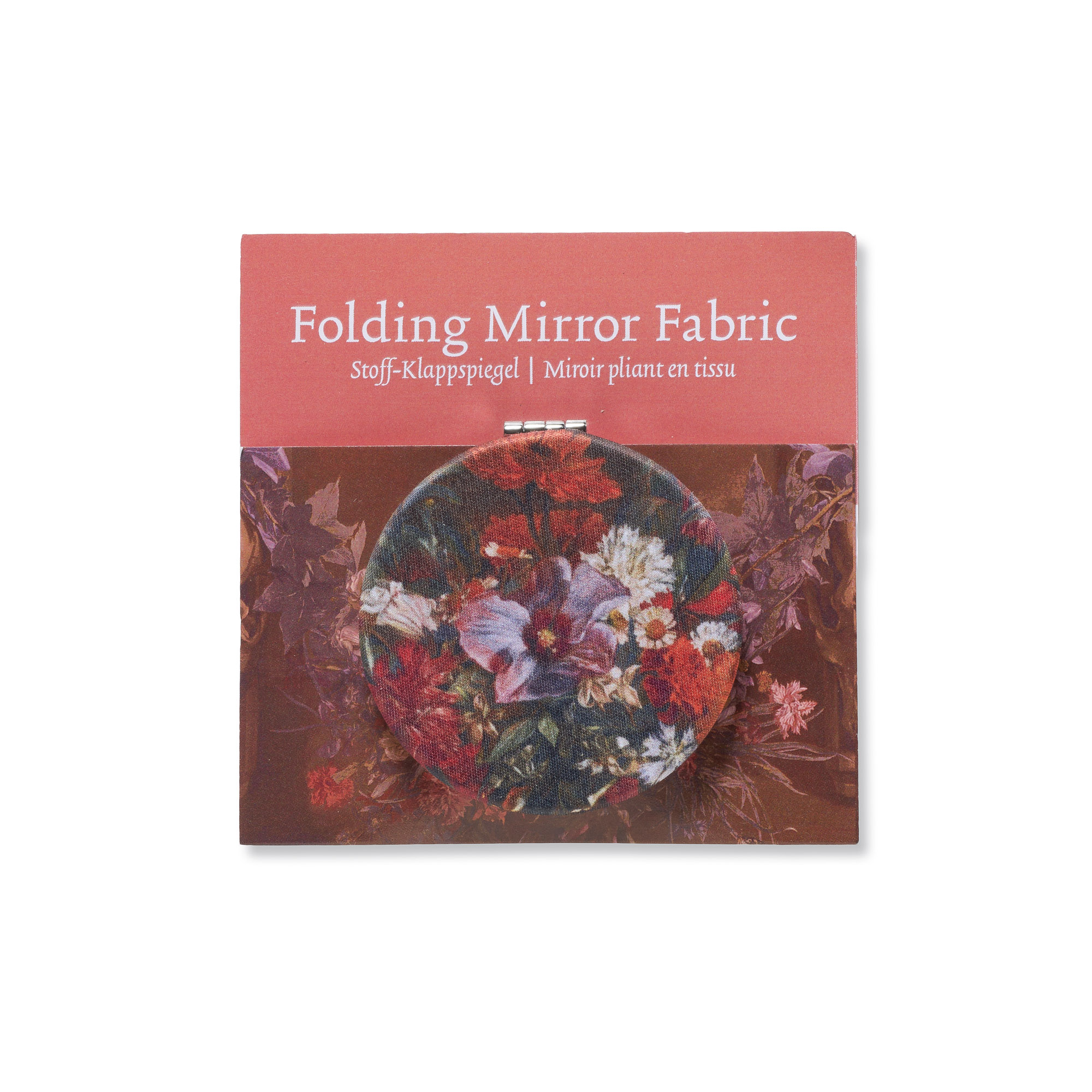 Stoff-Klappspiegel Größe: 6,3 x 9 mm Stoff-Klappspiegel bedruckt mit einem Detail aus dem Gemälde „Blumengirlande mit Libellen“ (1652) von Michaelina (c. 1614/18-1689), inklusive Normal- und Vergrößerungsspiegel.