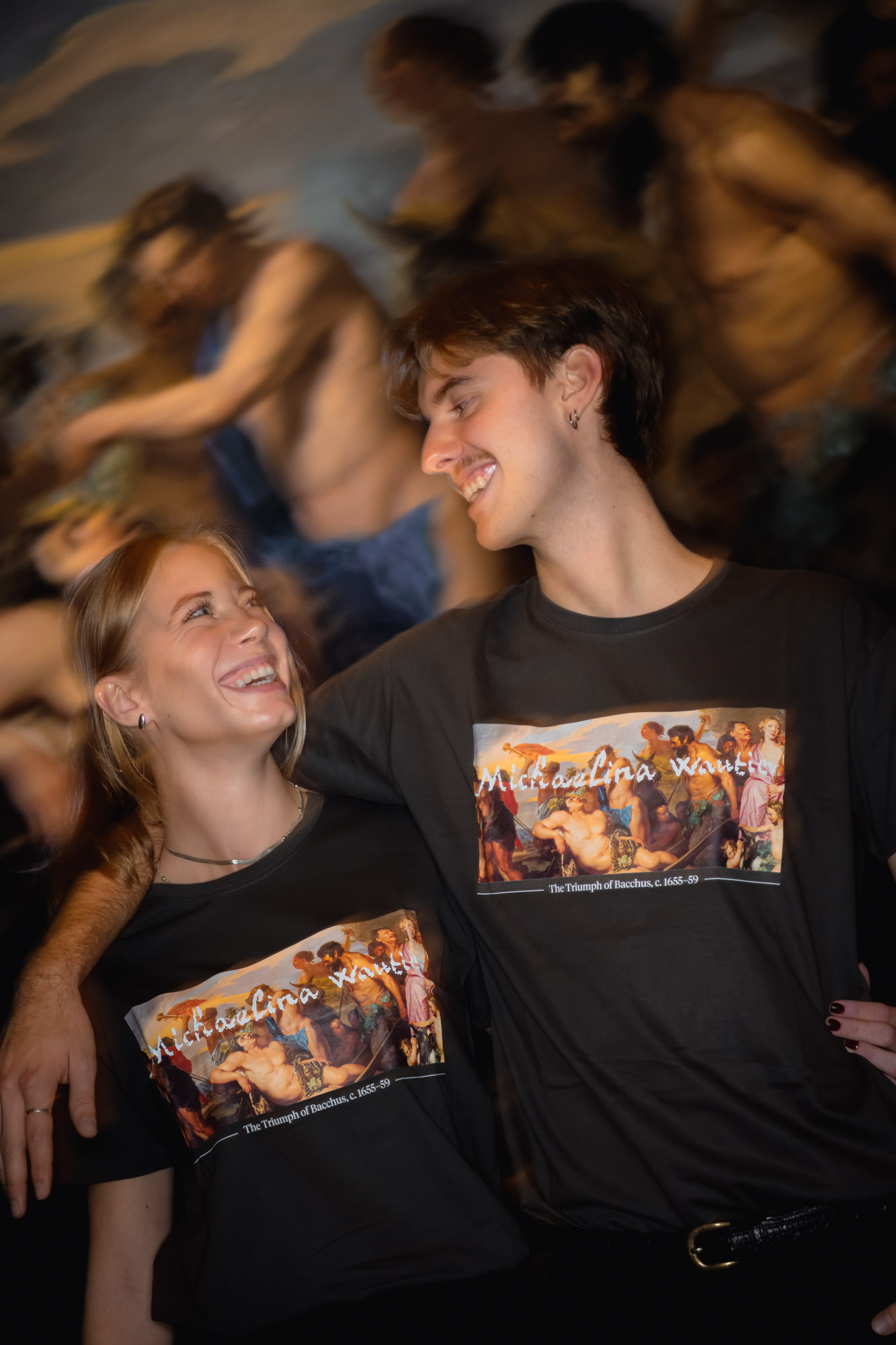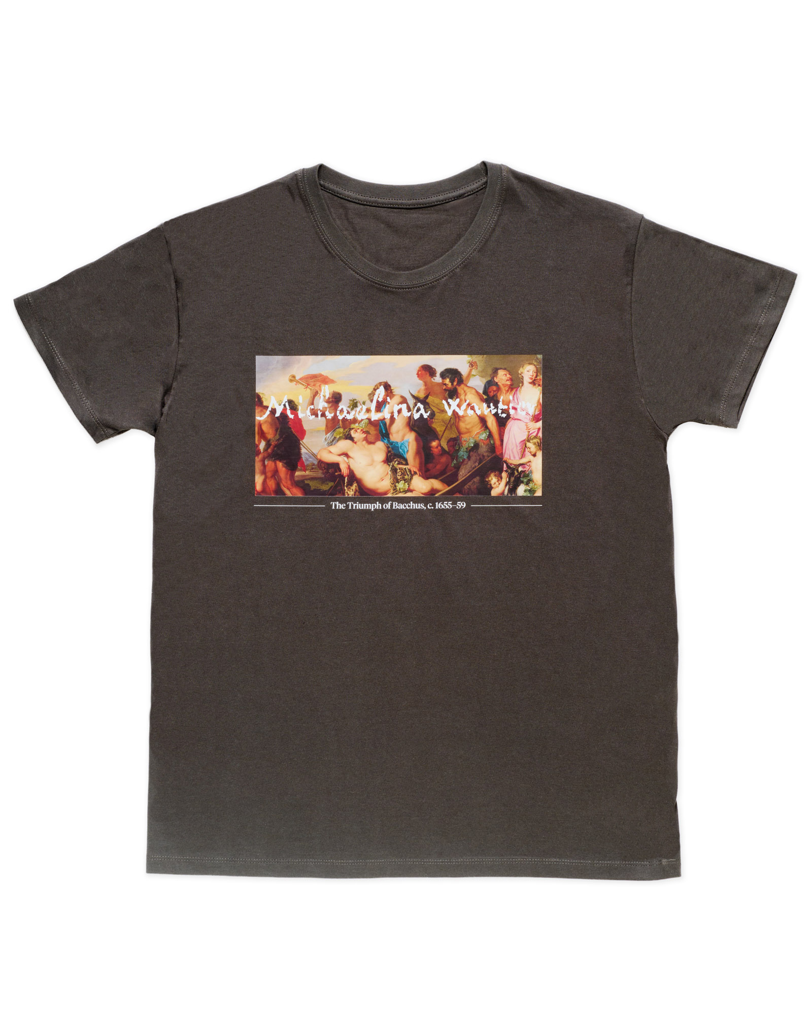 Kurzärmeliges T-Shirt bedruckt mit dem Gemälde „Triumph des Bacchus“ (1655/1659) von Michaelina Wautier (c. 1614/18-1689).